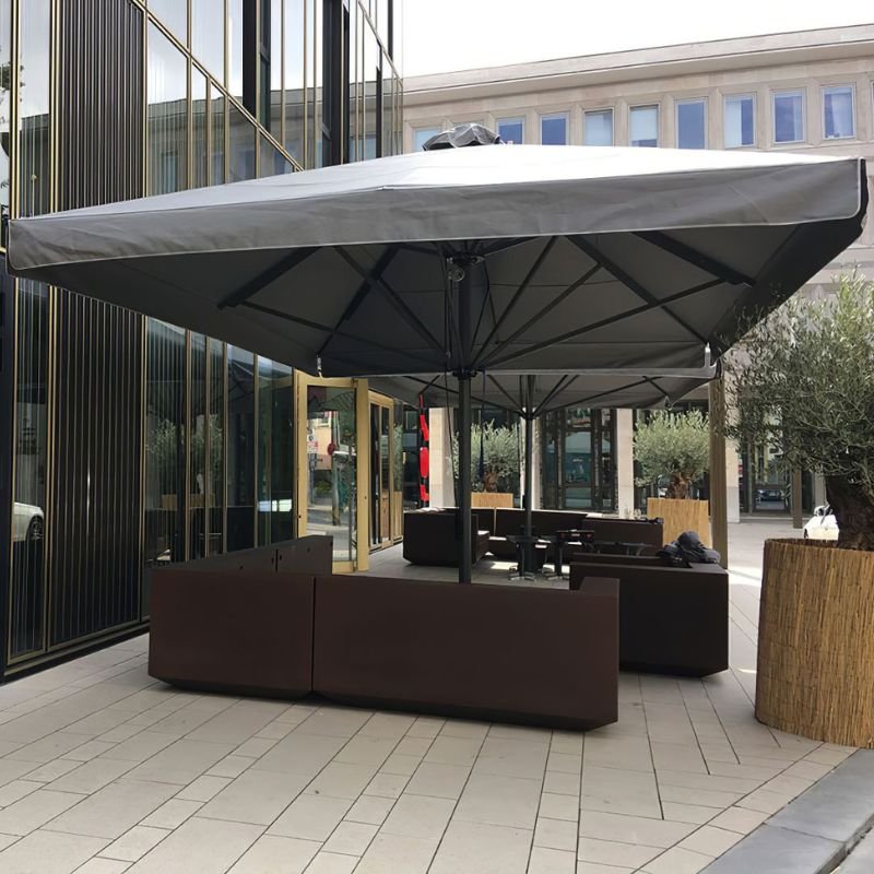 - مظلات الساحات: وهي المظلات التي تستخدم لتوفير الحماية في الساحات العامة والأماكن العامة الأخرى.
